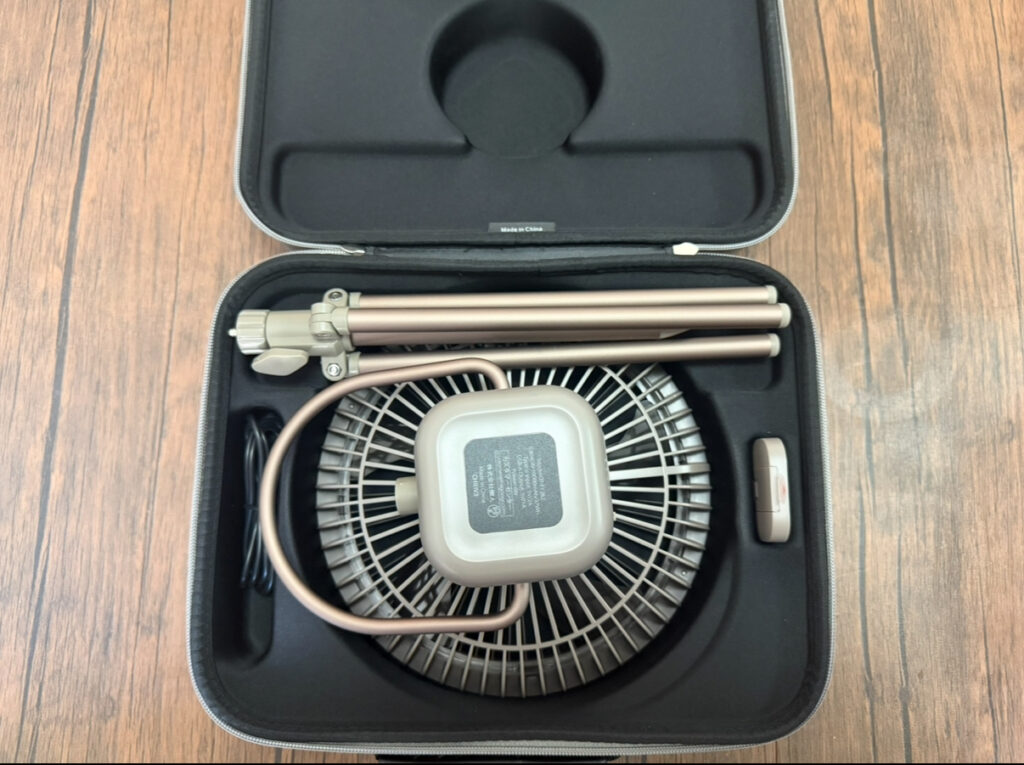想像よりも収納ケースは大きく、頑丈な作りになってましたが、荷物が多いキャンパーは扇風機に傷がつかなそうなのでありがたい….