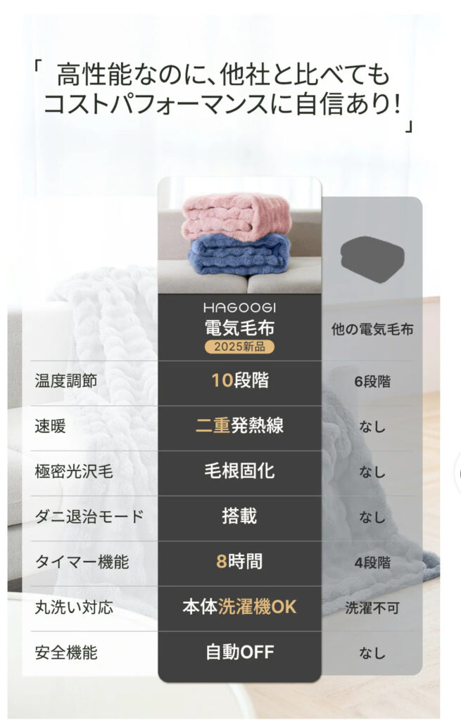 「見た目もおしゃれで、機能性も抜群の HAGOOGI 電気毛布」!