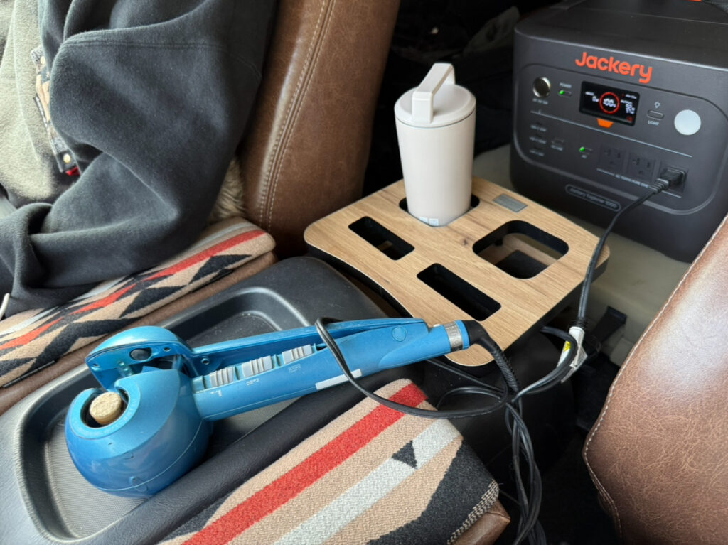上記写真のように、YETIのクーラーボックスの上に1000newを置いて、車の走行中に助手席で髪の毛を巻けたのに感動しました!